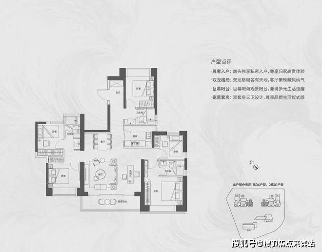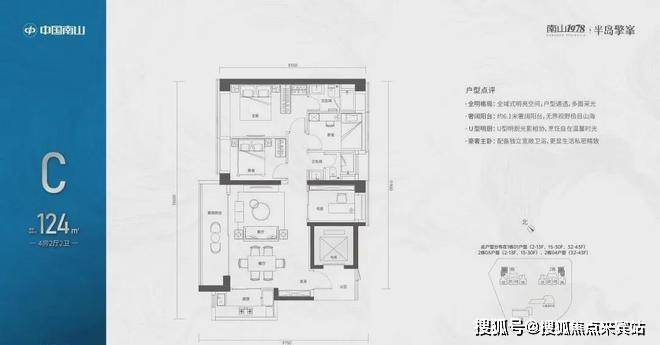 【124㎡的4房2厅2卫】1栋01/2栋05户型,电梯入户送独立公区,横厅南北通透格局,客餐厅6.1米开间,五开间朝南,主卧大套间设计,6.1米长观景大阳台,U型厨房,得房率:72.07%(不含赠送)西北或东南朝向;