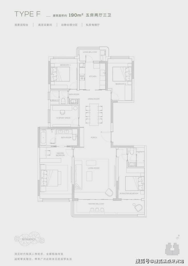 190产品为五房两厅三卫产品,充满了对云端人群生活的独特见解,南向双主卧,中西厨布局,打造纵向超长LDK一体化空间,产品所体现的不只是居住产品,更是特属客群所拥有的生活方式。
