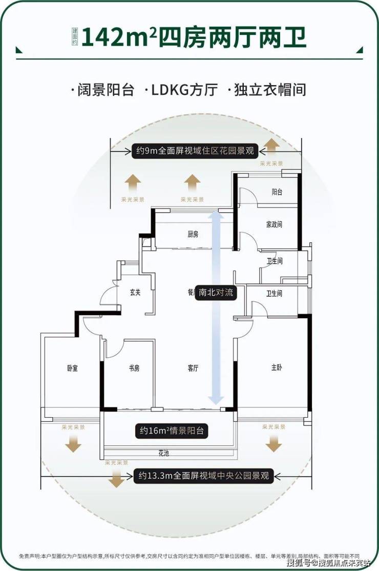公园臻品:①专梯独户,T2/T3布局;②起步即四房,全LDKG大通厅设计;③户户朝南,自然景观360°环绕