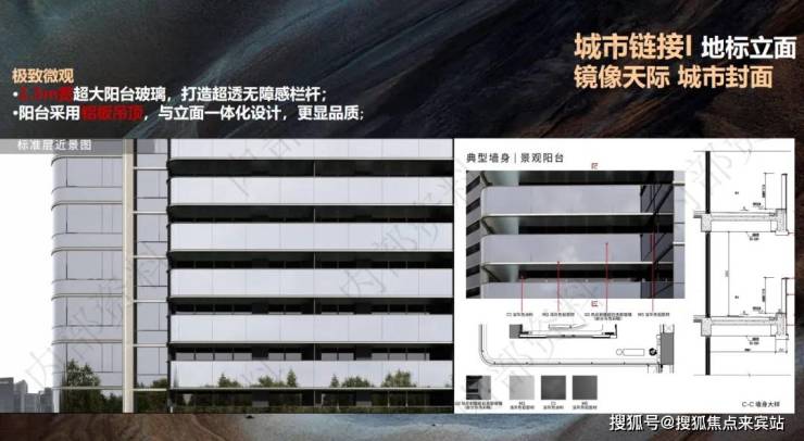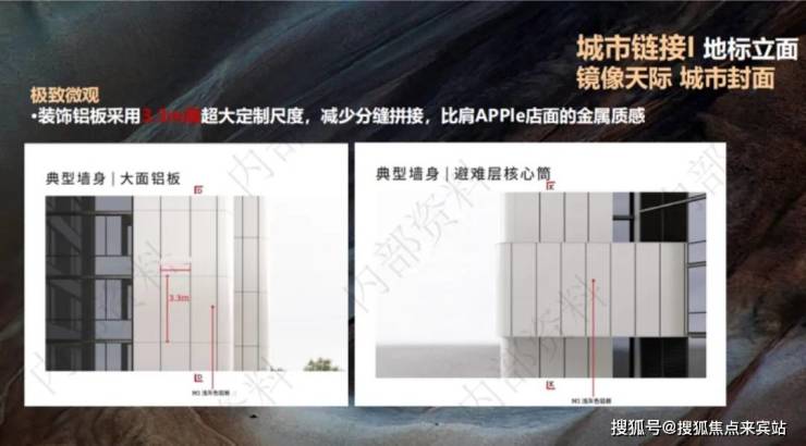 项目采用的是公建化外立面,以玻璃幕墙和铝板为主体,规格定位颇高: