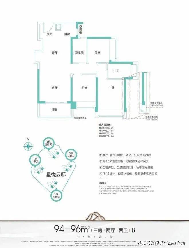 【六维社区】主力建筑面积约95-124㎡三至四房,精工匠造悦居体系