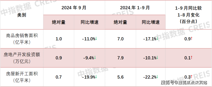 2024年1-9月全国新房销售及投资开工同比降幅均收窄|开发经营数据解读