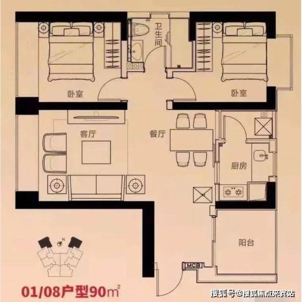 面积:85-89㎡2房1卫,90㎡2+1房1卫,125㎡3房2卫
