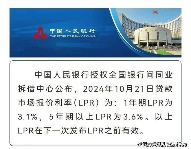 2024年10月21日贷款市场报价利率(LPR)为:1年期LPR为3.1%,5年期以上LPR为3.6%。