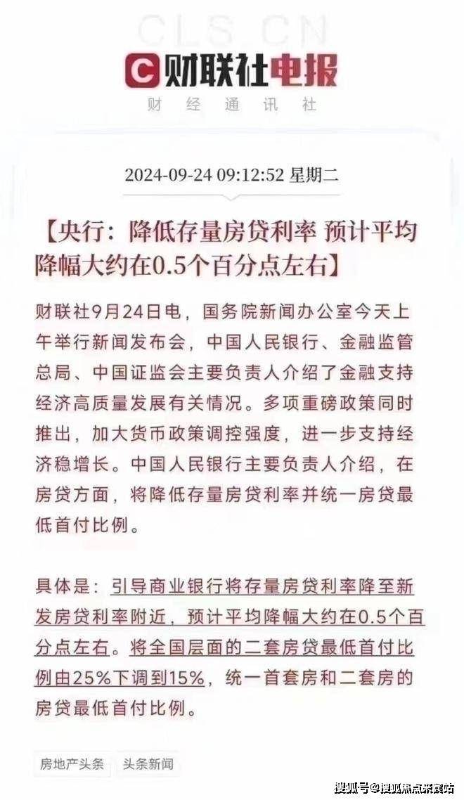 (3)降低存量房贷利率,平均降幅0.5%;引导商业银行将存量房贷利率降至新发房贷利率附近!