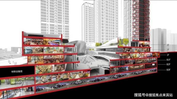其中商业综合体包括地下三层商业MALL和地上三层公园购物街区。