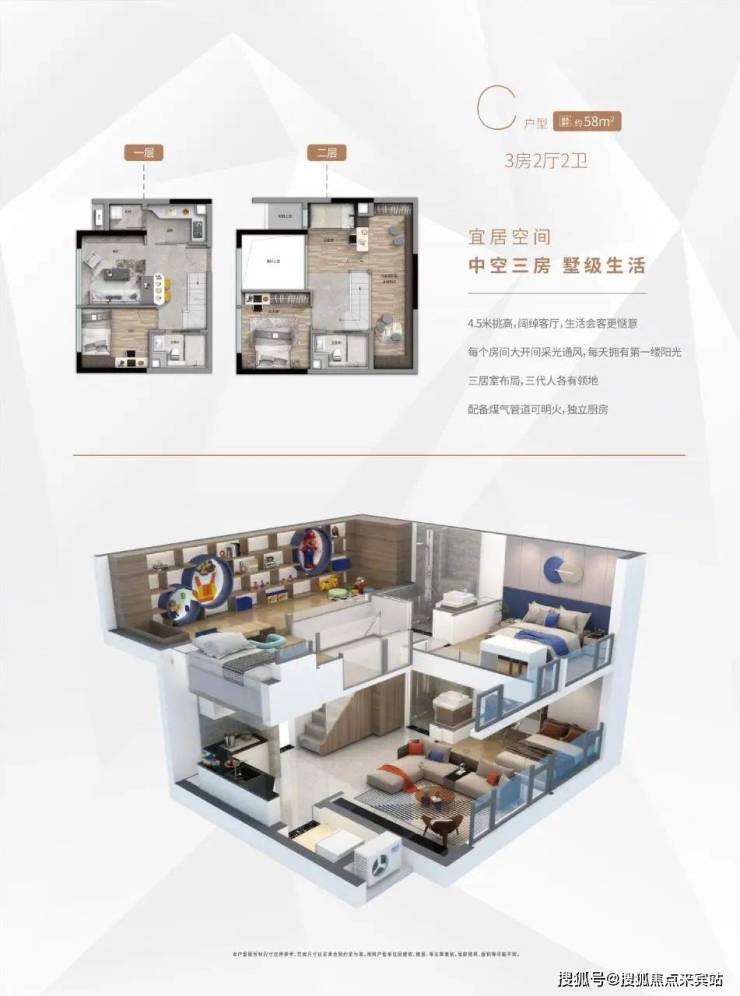 公寓部分规划了3栋21层高楼栋,4梯16户loft设计,共推出288套房源,户型层高4.5米,为精装交付。