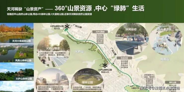 天河最近山景一手盘:背靠旧羊山自然公园,周边环绕凤凰山森林公园、火炉山森林公园等,及天鹿湖湿地公园、大观湿地公园,近享天河稀缺自然公园资源。