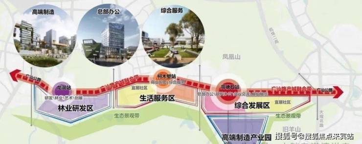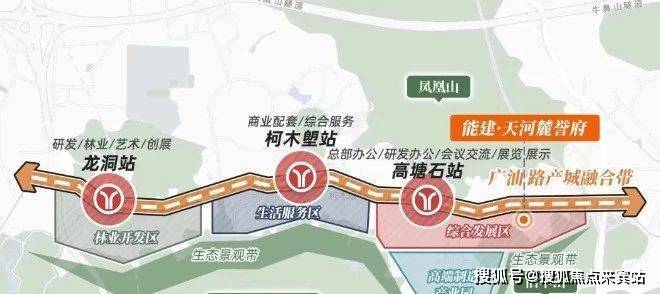 未来片区打造3.8公里广汕路产城融合带,形成高塘石、柯木塱、龙洞三大TOD发展中心,高塘石规划综合发展区及宜居社区。