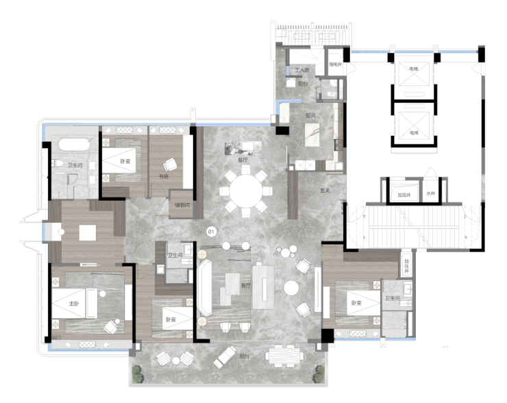 为满足不同家庭成员生活需求,琶洲南TOD所有户型均设置双套房。
