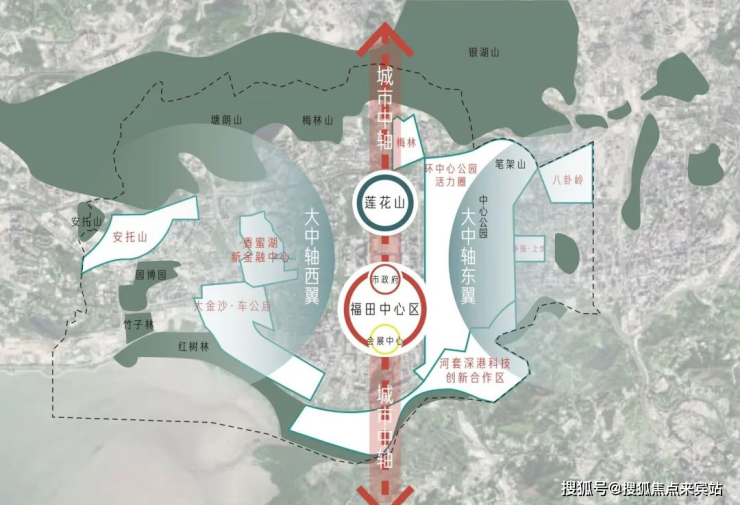 片区发展,超300亿大金沙规划,唯一接驳福田CBD和深圳湾的滨海新城,北邻香蜜湖新金融中心和车公庙2049未来之城,南接河套深港科创合作区,以政府资源的倾斜和前瞻的规划,成为最具生长力片区,主推福田CAZ转型。