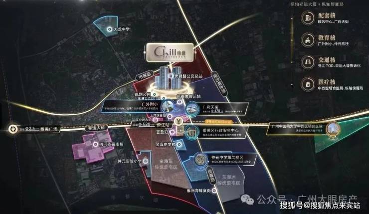 项目位于番禺广场板块,楼盘就在番禺客运站北侧,龙湖金地天峯旁边