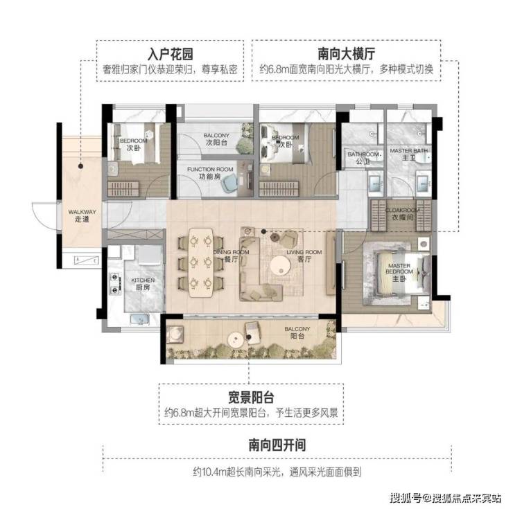 建面约127㎡3+1房2厅2卫,为城市改善人群特别定制。贴心规划多功能灵动空间,可作书房、兴趣室或未来孩子房,一房多用,为未来生活预留无限弹性。约6.8米宽南向大横厅,超大尺度为家庭聚会、朋友宴请、亲子游戏提供了充足的空间。家人围坐畅谈,孩子自在奔跑,其乐融融的景象在此自然上演。精心设计独立入户花园,是归家的第一道风景,更是归家情绪的缓冲区,让居者从容完成从“社会角色”到“家庭角色”的转换。