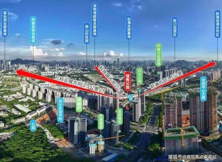 项目周边聚集深圳头部产业资源:西侧为科技园(腾讯、大疆等科技企业总部),东接前海金融中心,南靠蛇口自贸区,北邻留仙洞战略性新兴产业总部基地。区域内以高新技术、金融、总部经济为主导,吸引大量科技从业者及金融精英,形成高净值人群聚集效应。同乐片区未来或承接南山产业外溢,成为职住平衡的重要节点。
