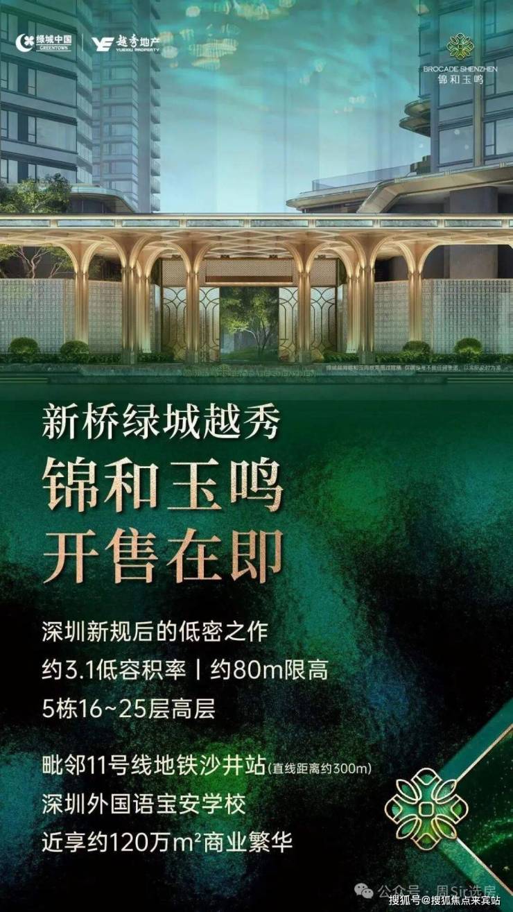 锦和玉鸣府,位于深圳宝安区沙井新桥街道的中心路与迎宾路交汇处,由绿城中国和越秀地产联合开发的项目,地处大前海、大空港、会展新城和海洋新城四大战略区域核心,享有政策优势。2021年前海合作区扩至120.56平方公里,沙井街道纳入辐射范围,成为深圳湾发展核心。大空港规划区约95平方公里,整合多产业,重塑西部发展。2025年海洋新城主干路网基本完工,2035年形成千亿级产业集群。新桥街道2024年GDP增速7.8%,连续两年宝安区前列,未来区域价值有望提升。