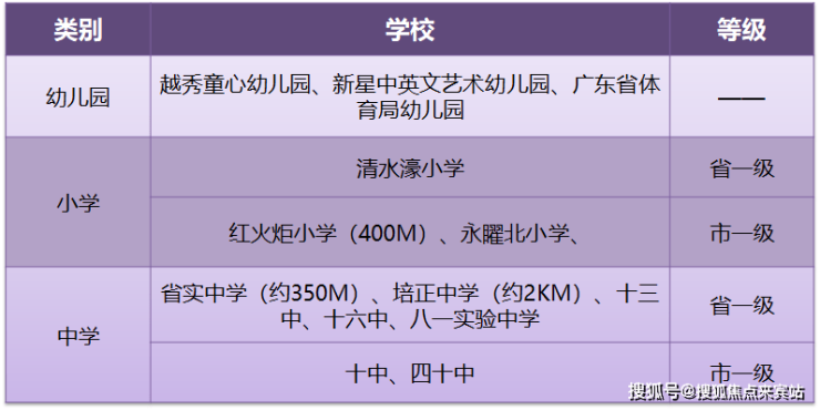 周边名校环绕,清水濠小学(省一级),广州老牌名校红火炬小学(创办于20 世纪40年代历史底蕴丰厚),中学覆盖省实、16中、培正、八一实验等多家省级名校。