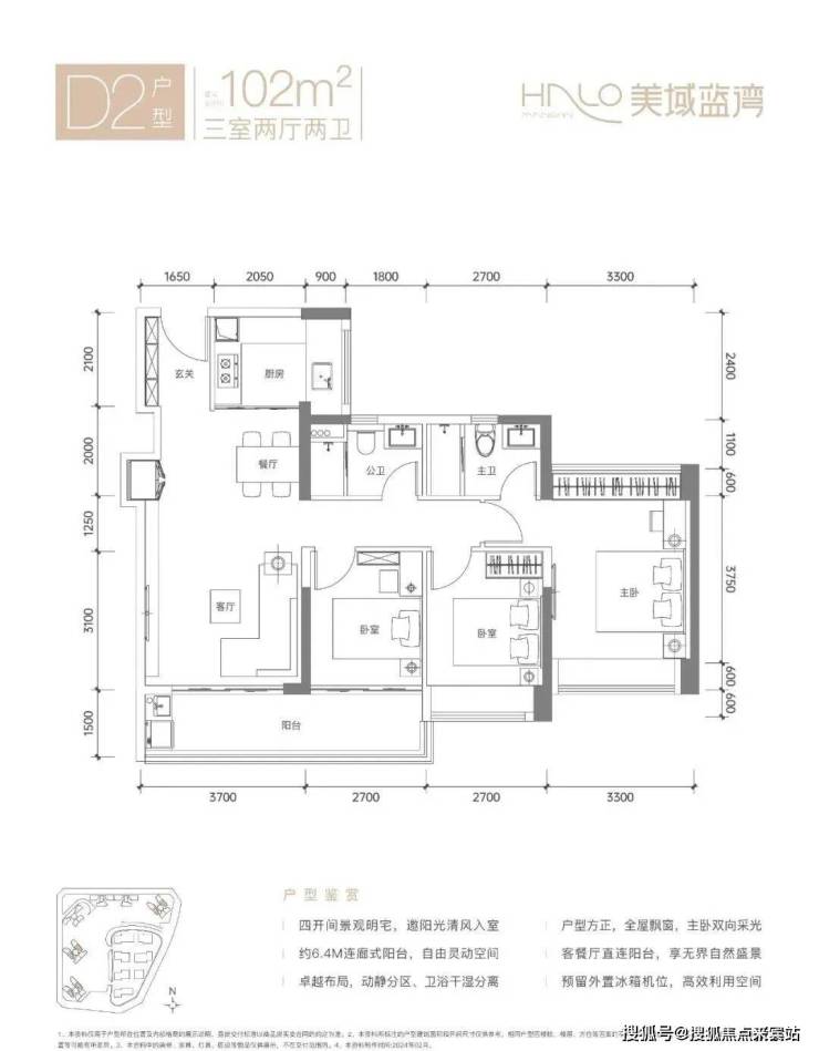 🏆面积段约102平米3房2厅2卫,119平米4房2厅2卫