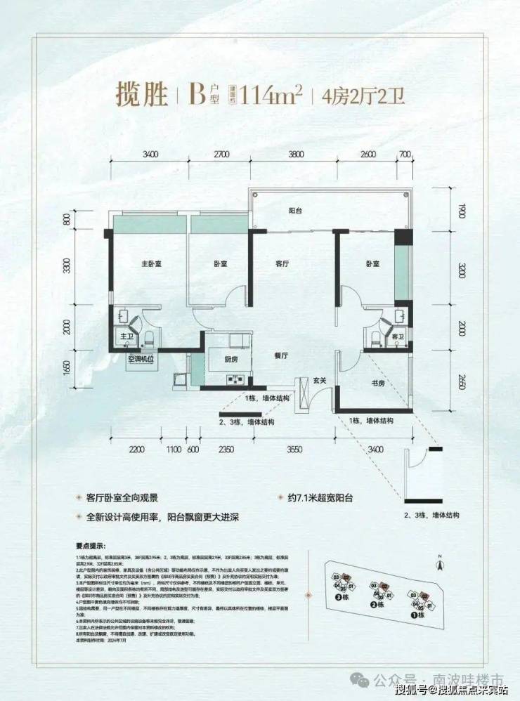 项目共规划3栋住宅,共480户,其中自持租赁34户、公租房71户,商品房375户,总高32-38层,车位800个,目前在售主要户型约113-114-141㎡ 四房两厅两卫,关注价格请后台私信!