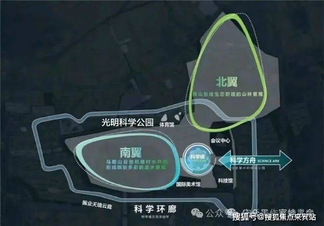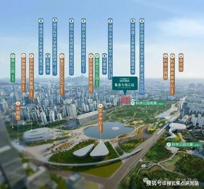 包括科学公园横跨的三座地铁站(楼村站、科学公园站、光明站),以及环伺的深圳科技馆新馆(建设中)、深圳国际美术馆(暂定名,建设中)、艺术中心(建设中)、光明书城、体育馆、科学岛等“五馆一岛”城市级文化地标。
