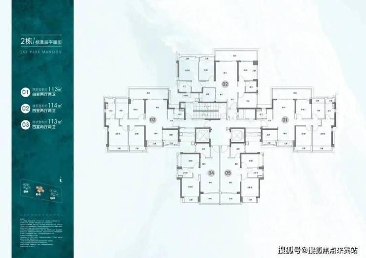 总层高33层(非超高层),两梯五户,建面约113和114平两种户型