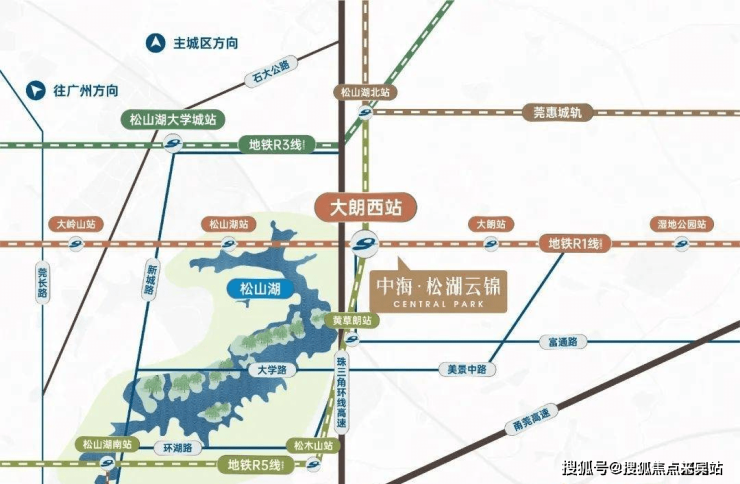 东莞地铁共有1、3、5号线经过这里。预计2024开通的大朗西站,处于地铁1号线和5号线交汇处,1站便能到万象汇,5站到东莞市区,9站直达深圳光明科学城,占据湾区双科学城的科创优势。