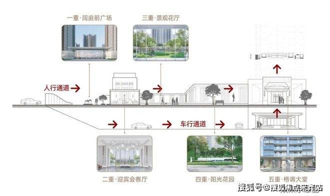 从阔绰门庭,城市会客厅,景观花厅,阳光花园到贵雅大堂,打造五重进制礼序归家轴线,让回家的每一步,都是一次尊贵的品质归心之旅。