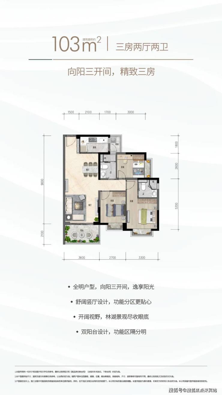 约103㎡三房两厅两卫:向阳三开间,瞰湖精致三房