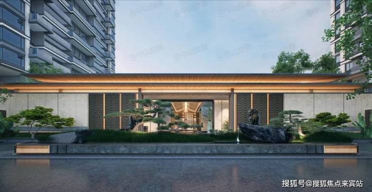 其中,归家门堂的设计极具辨识度,将打造五星级落客区,与迎客松山水造景巧妙结合,整体奢华大气,尊贵感拉满!