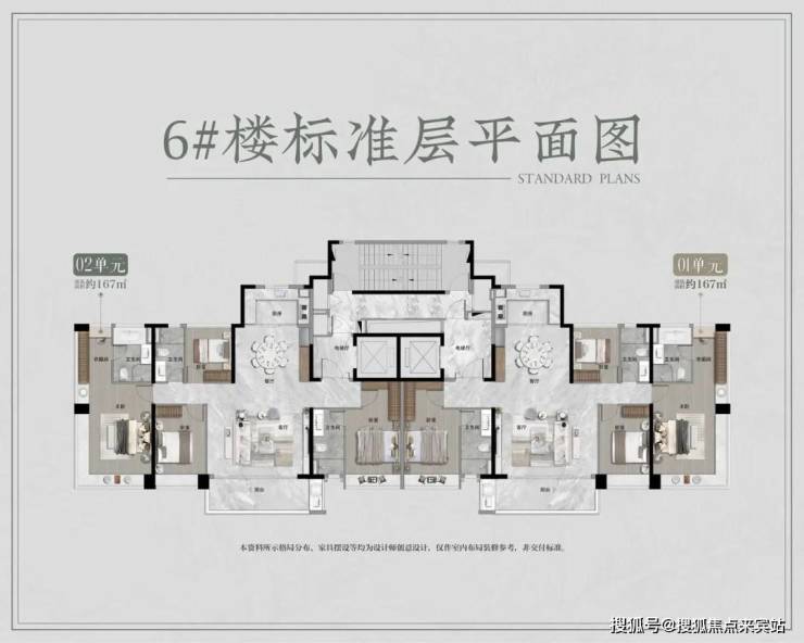 以人居的纯粹表达,项目在整体楼栋上,以北高南低、横向平行的对称式美学,保证每一户的南北开阔度,让居者的景观视野更宽广;同时打造两梯两户,以崇的归家仪式感,给生活至臻的礼遇。