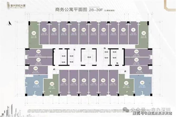 在售面积 公寓约48-62㎡ 写字楼60-1800㎡