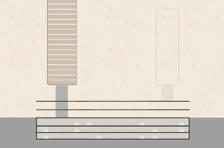 整个超级底盘采用层叠式规划:首层打造酒店式落客区与阔绰车马院,以对称礼序营造归家尊崇感,围合出静谧城市绿洲;二层规划环廊与专属健身空间,未来通过规划中的慢行走廊无缝衔接周边商业与文化配套,实现居住与城市的高效联动;三层打造天际花园,融合浮岛、水景、萌宠乐园等全龄场景,营造度假式社交场域。同时,项目独创“生境之斗”设计,让阳光、清风、绿意渗透至地下空间与每一层归家动线,搭配人车分流、客货分流、主服分径的无雨归家体系,全方位保障居住私密性与静谧感,让每一次归家都成为一场疗愈之旅。