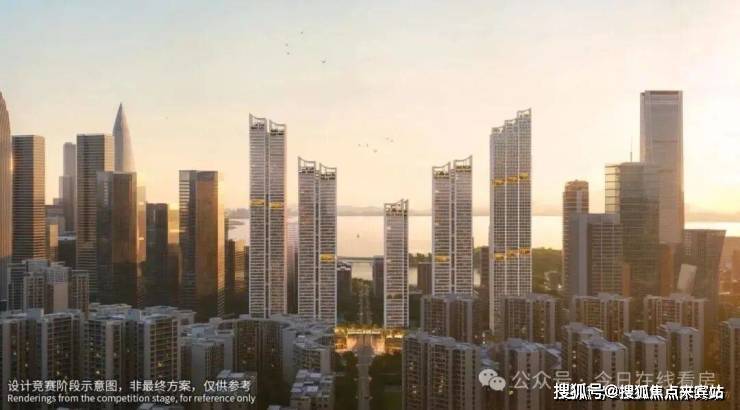 塔楼规划:由5座150-250米塔楼组成(1座250米公寓,4座住宅分别为150米、200米、200米、240米),采用错落布局和平面退台设计,优化深圳湾景观视野,层高3.6米,约40-70层(不含底商)。外立面采用全玻璃幕墙,设计灵感来自植物细胞的有机形态,原方案锐利阳刚,新方案柔软温润,类似天鹅湖花园和红树西岸,强调自然与居住融合,绿植丰富。