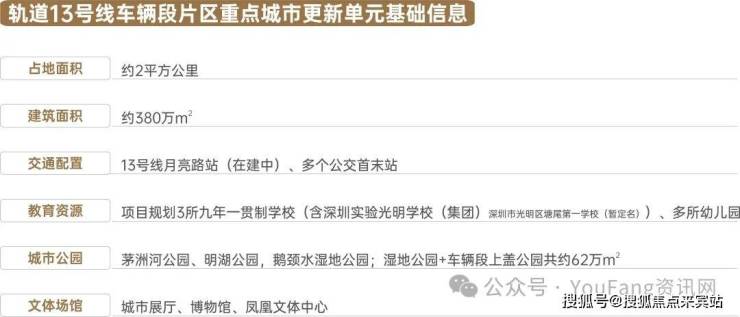 地铁13号线:项目属于地铁上盖物业,且是在被称为黄金科创线的地铁13号线的月亮路站上盖。13号线作为深圳三大快线之一,将光明快速连接南山区及宝安区。因连接光明科学城、留仙洞、科技园及后海总部基地,与广深港科创走廊重叠,因此也被誉为是深圳的黄金科创线。(*在建中,该规划属于片区更新单元范围内。)