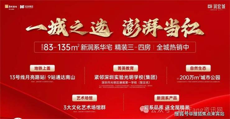润宏城,位于光明凤凰街道,光明“中部组团中心”,作为片区更新单元内高品质住宅项目,紧邻茅洲河中央水岸片区,大体量城市级开发,集轨道交通、优质教育、城市公园、创新产业、品质居住于一体,打造“宜居、宜业、宜游”都市生态标杆大城。内部和谐共生,外部深度链接,超越时代的大城生活方式,打造大湾区未来发展样本。