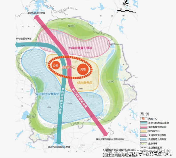 光明区,定位“深圳北部中心”,是大湾区综合性国家科学中心的先行启动区和核心承载区所在。以“世界一流科学城”为目标,打造原始创新策源地、科研经济先行地、创新人才集聚地。