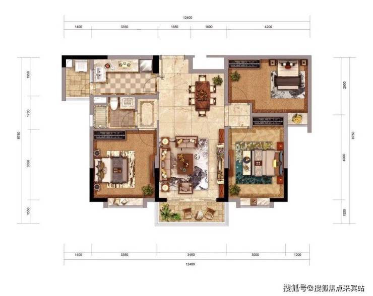120㎡-三室两厅|配置三个大面积卧室,生活舒适