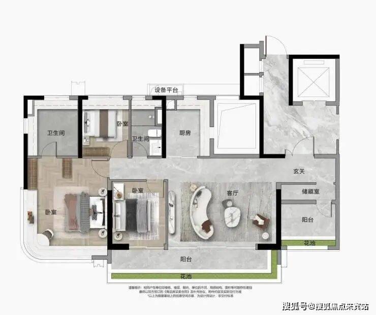 “超强采光” 最大约8.9米开间双联阳台,最大约16米南向采光面,充足阳光,舒适惬意