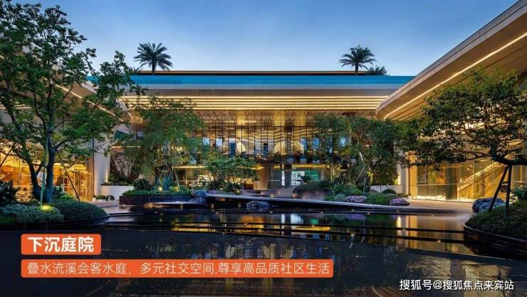 下沉庭院,叠水流溪会客水庭,多元社交空间,尊享高品质社区生活