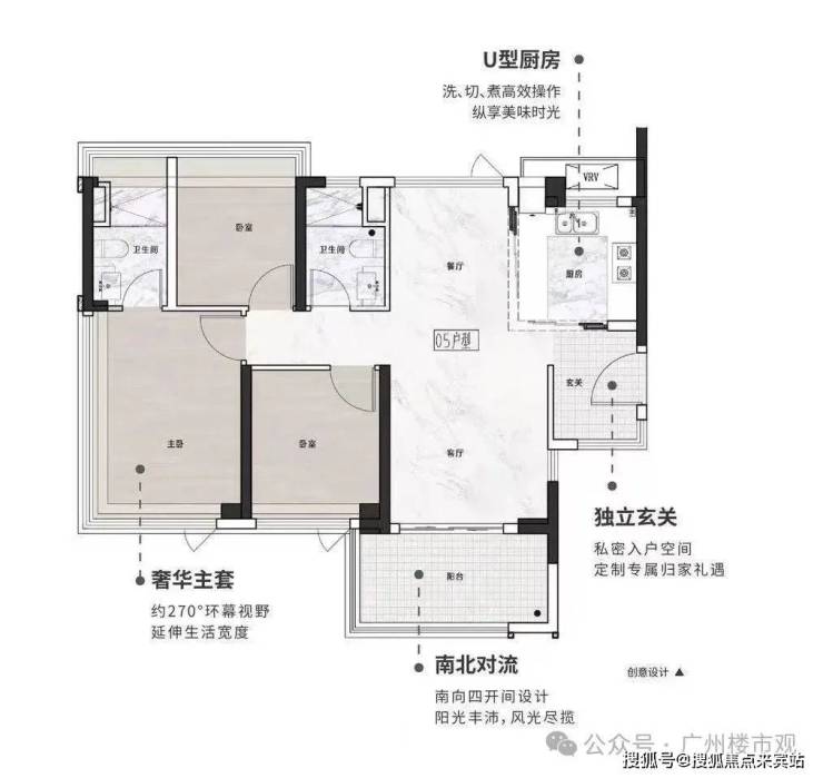 建面约108㎡四房两卫,4栋都有分布。进门带独立玄关,南北对流+大阳台,比较通透舒服。