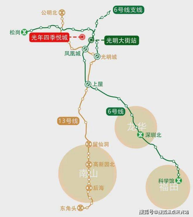 若是出行,6号线光明大街站C出口就在直线距离约800米处,步行10分钟便能抵达,不换乘情况下可直达红山、北站、福田等,换乘13号线全程8个站又能去到南山。