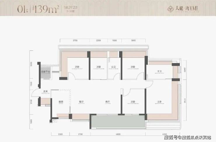 项目用地面积13657.28㎡,容积率仅2.8,建筑面积38155㎡,含住宅34555㎡,其他面积用于物业用房、托育机构和公交站,车位380个。户型产品为113㎡ 4房和139㎡ 5房 约290套,2栋100米内31层住宅,2梯4户,其中主力为113㎡ 4房,具体户新图暂未公布。