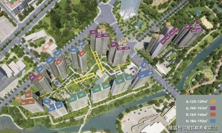 社区内部采用围合式布局,楼间距最宽达 260 米,中央园林面积超 2 万方,规划风雨连廊归家系统与全龄活动空间,兼顾实用性与景观体验。