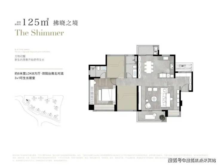 125㎡的 3 室 2 厅 2 卫是刚需向的入门户型