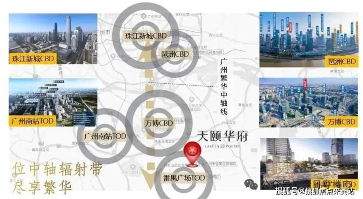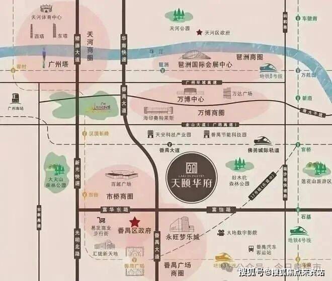 ① 地处番禺广场板块,四地铁交汇的广州枢纽级交通中心(3 号线、18 号线、22 号线、17 号线)