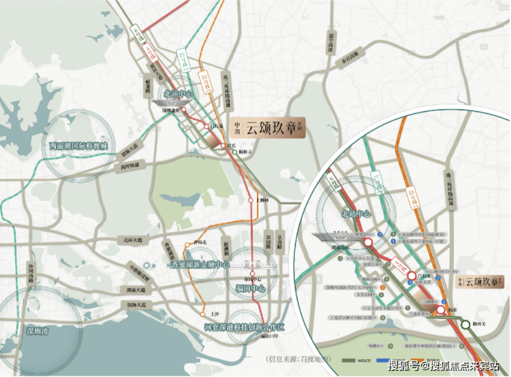 自驾方面,项目距离梅观路仅约200米,可快速南下福田金融中心,十来分钟可达。梅观路已完成市政化改造,采用双向14车道标准(主路8车道+辅路6车道),设计时速达80公里/小时,通行能力提升100%。此外,项目距离深广中轴城际民乐站仅数百米,远期规划将实现与穗莞深城际、深大城际等线路的换乘,构建广深一小时交通圈。
