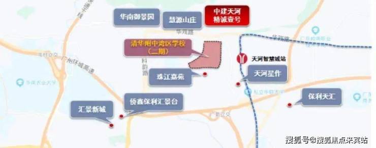 距离项目800米的12年全日制市属公办名校清华附中湾区学校二期,共规划108个班,预计2025年6月完工并投入使用。