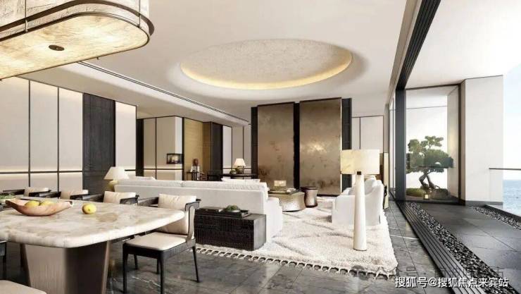 ◎首层广场,铸造山水迎池、逸隐院落、奇石叠屏等,让东方儒雅绽放繁华都心,礼献乘物游心的归家意境。