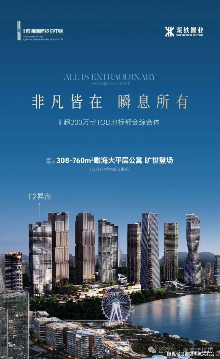 深铁前海国际枢纽中心首发T2 昇海,建面约308-760㎡瞰海大平层公寓,外立面取意风生水起之形,昂扬非凡人生格调,以全套房空间设计、IMAX环幕海景(部分户型为城市景观)、奢感公区配套,映照塔尖人物的生活尊崇。
