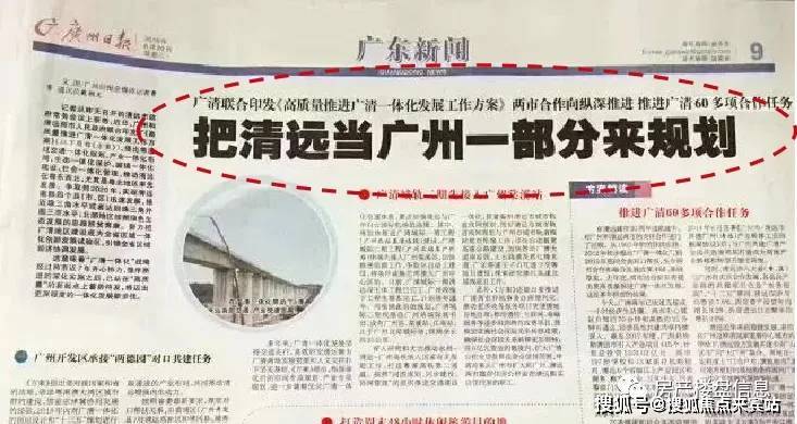 2018年6月底,广州、清远两市人民政府联合印发了《高质量推进广清一体化发展工作方案》,规划中显示,要将清远当做广州的一部分规划,让广清一体化发展迎来全面升级。推出产业+交通+旅游,独特的“度假”发展模式