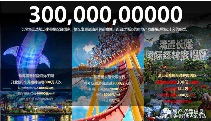 全国第三个长隆主题乐园,占地增至14.4万亩,总投资达300亿;规模相当于15个番禺长隆,接近3个澳门,相当1个天河区,年客流量3000万人次,带动综合经济效益超过1000亿人民币,创造5万就业岗位 ,带动周边30万相关就业人口